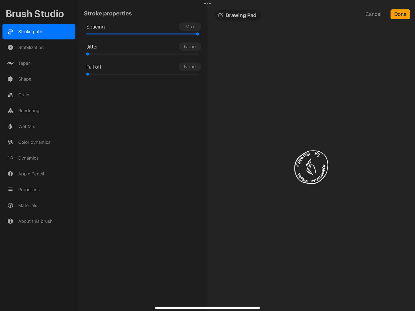 Important: when you are done adjusting your settings on your new brush tap the done button in the upper right corner to save your brush!